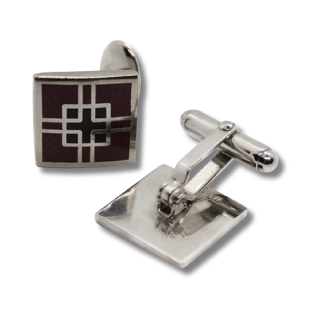 The cuff link was designed to be affixed to the button holes on shirt cuffs, making them unlike other accessory pins, which necessitate needles. The exact style of backing can vary, but usually there’s a bar–often movable, though sometimes static–that can turn and twist through the hole, where it can secure the fabric between the bar and the design. Any flat or shallow design between ½” and ⅞” in width and length can make a cuff link, which means impression dies for buttons and small lockets can be converted for this use.