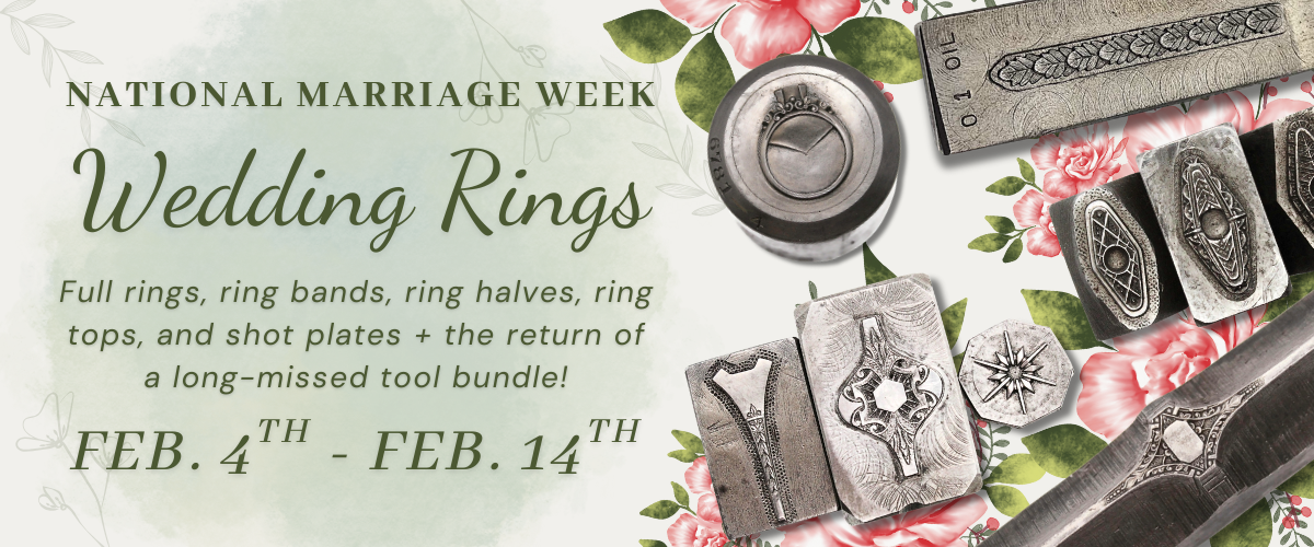 We at Potter USA made this bundle for beginner jewelers and metalsmiths who feel overwhelmed by all our amazing tools! This starter kit includes 15 essential & popular tools: (x2) Multiples-on-One (x10 total) Rolling Mill Pattern Plates, (x2) Narrow Mill Pattern Plates, and (x3) Pancake Dies. This bundle has 15 total tools to get you started making rings. You'll get receive two multiple-in-one rolling mill plates and two narrow rolling mill plates to make patterned ring bands of varied styles from art deco to naturalistic. You'll also recieve three versatile pancake dies to make your ring-forming faster.