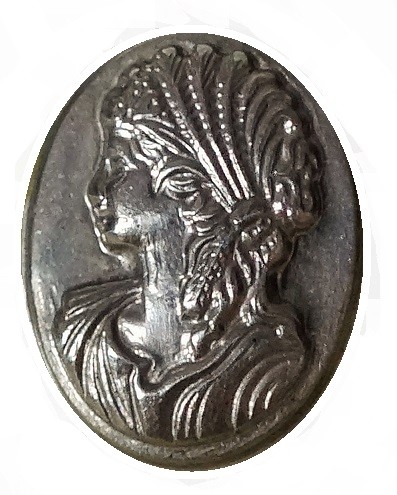 20 gauge stamped from antique die. Measures 7/16 inches wide x 5/8 tall These pieces are finished in the photo but will not be shipped out oxidized or finished! If you want to purchase this die in fine silver, please call us. The price for silver stampings is based off of the weight.