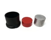 3 inch diameter x 2 inch height contained urethane with metal pusher (pusher not pictured). Comes with 95 durometer urethane. ***You can use this with 2 inch silhouette dies, BUT, the impression will not be able to get as deep as with the 2 x 2 contained urethane. NOT for use with impression dies.