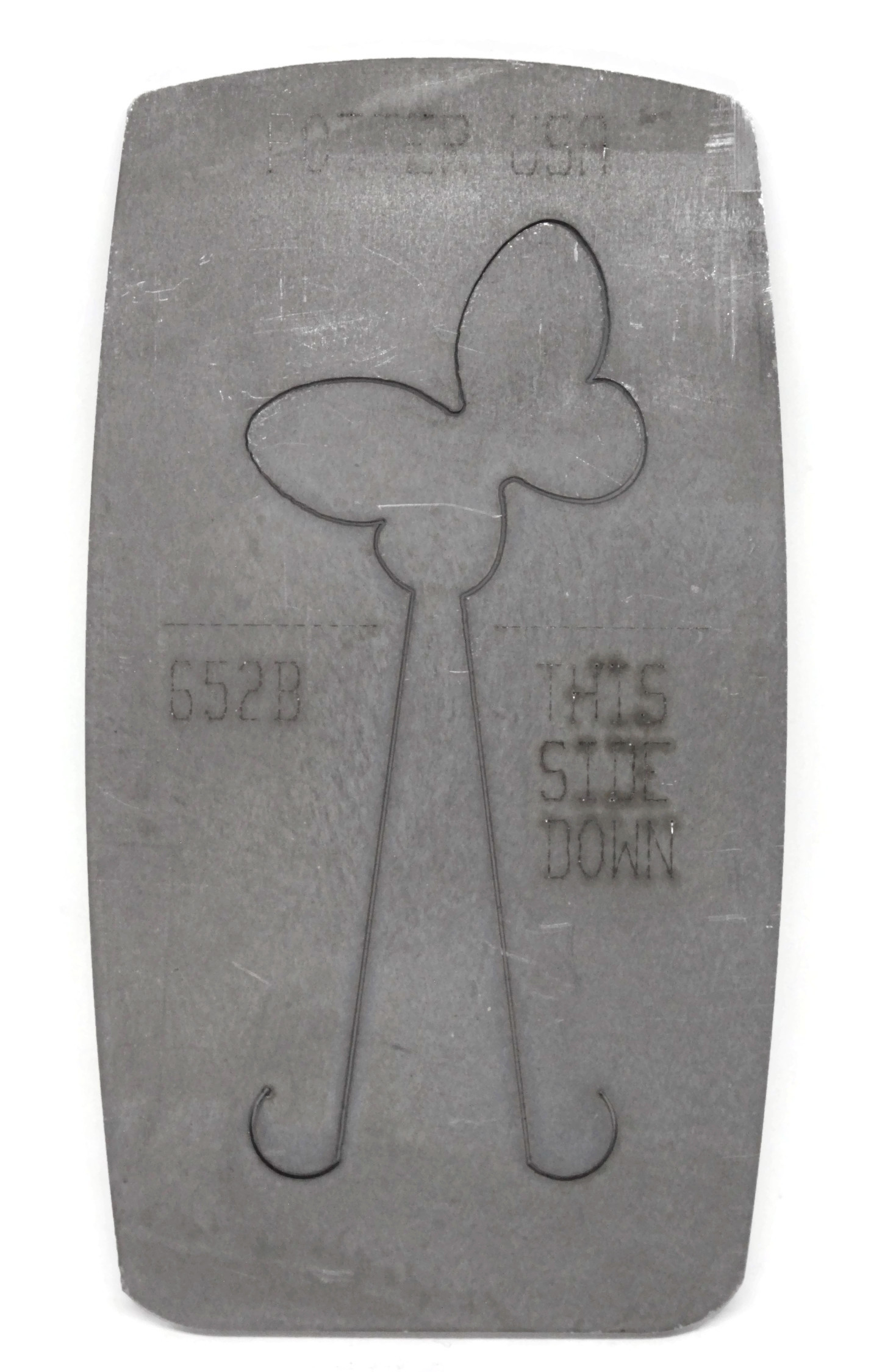 This simple flower design has the versatile capacity to make detailed botanical jewelry designs. Design: 1" diameter Please note: This die requires some deburring after stamped out, use flush cutters and file.
