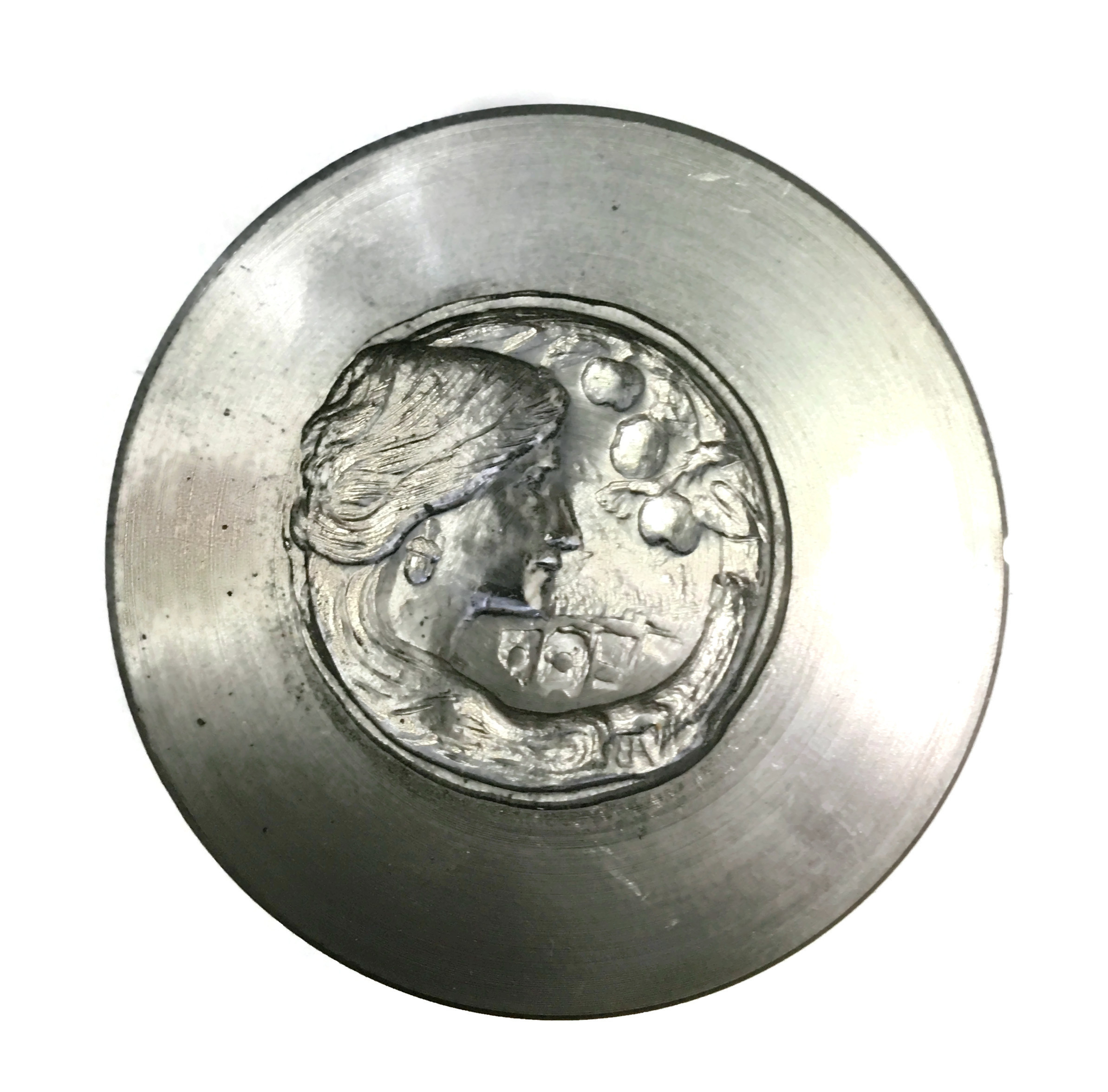 These impression dies are seconds that did not make the cut for primary stock. They are varied and slightly offset, but perfectly usable. Limited: 6 in stock. Design: 1 1/16" in diameter