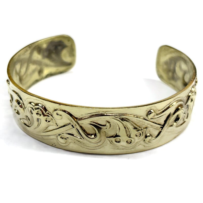 *THIS IS A COMPLETELY FINISHED BRASS BRACELET* It was stamped in 14 gauge brass The design is 6" x 3/4"