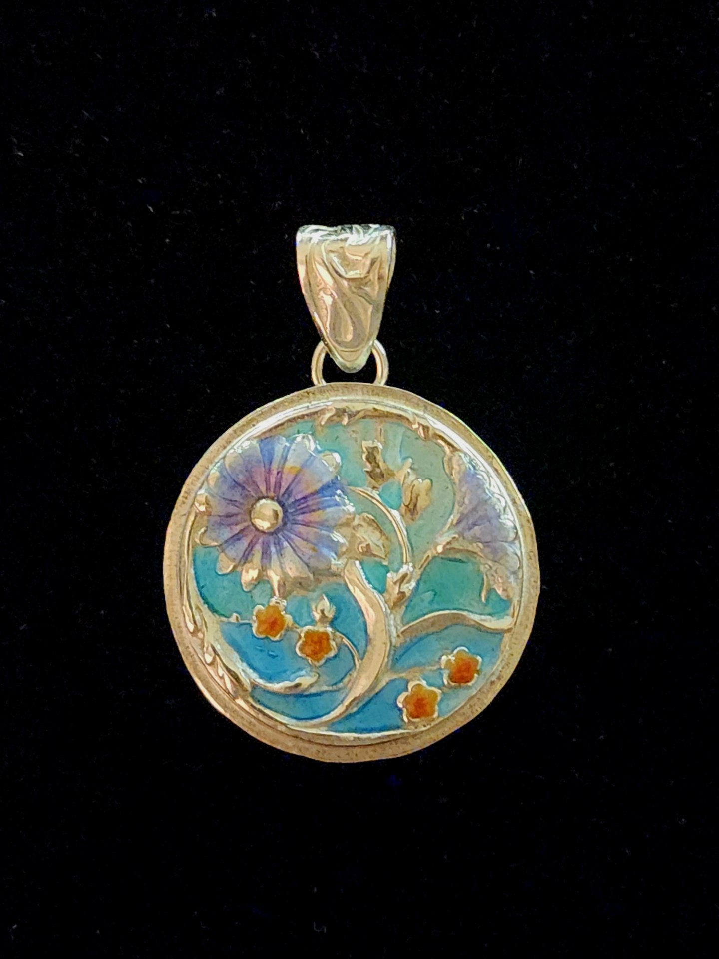 Champleve Enamel Pendant In-person class - Full Day Instructor: Sheryl Haupt Date: January 23, 2026 Time: 10:00am to 3:00pm Level: All Levels The classroom is located at 1949 E. Eastland, Tucson, Arizona, 85719. This class is for beginner and intermediate students. Some metal sawing and soldering experience is helpful. Make a champleve enamel pendant. In this one-day class you will learn to prepare a fine silver stamping, create a bail and solder it to the stamping, and then enamel to create a beautiful finished pendant. Cost of class includes all materials.