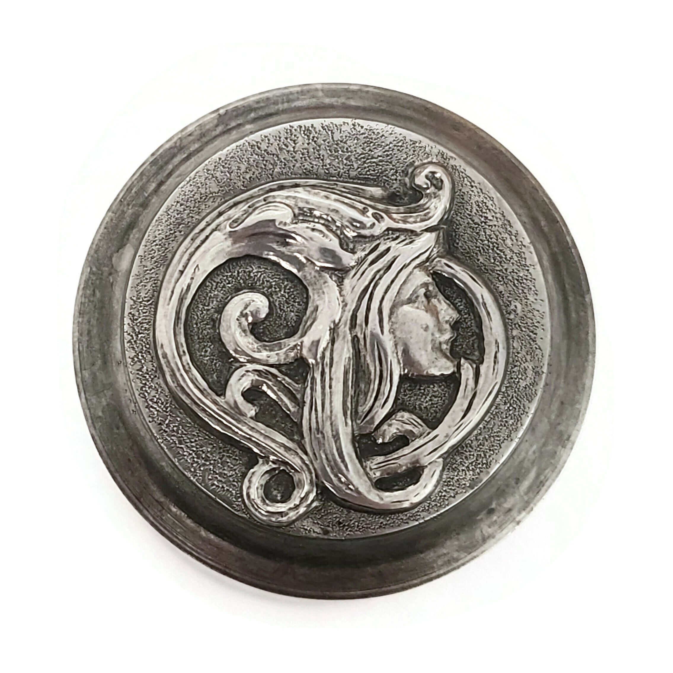 This art woman witch was re-created and carved by Kevin Potter. Join our Facebook group, Potter People, to watch the video of Kevin making the die. Design: 1-3/8 x 1-1/4"