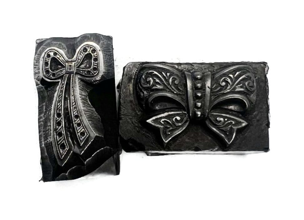 A pair of bows with folds and details. Each comes from Parisi Tool.