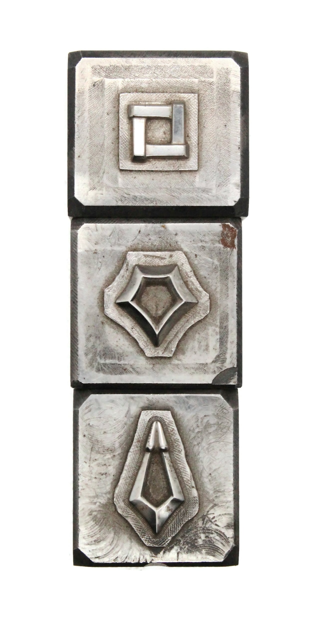 A trio of angular components for jewelry.