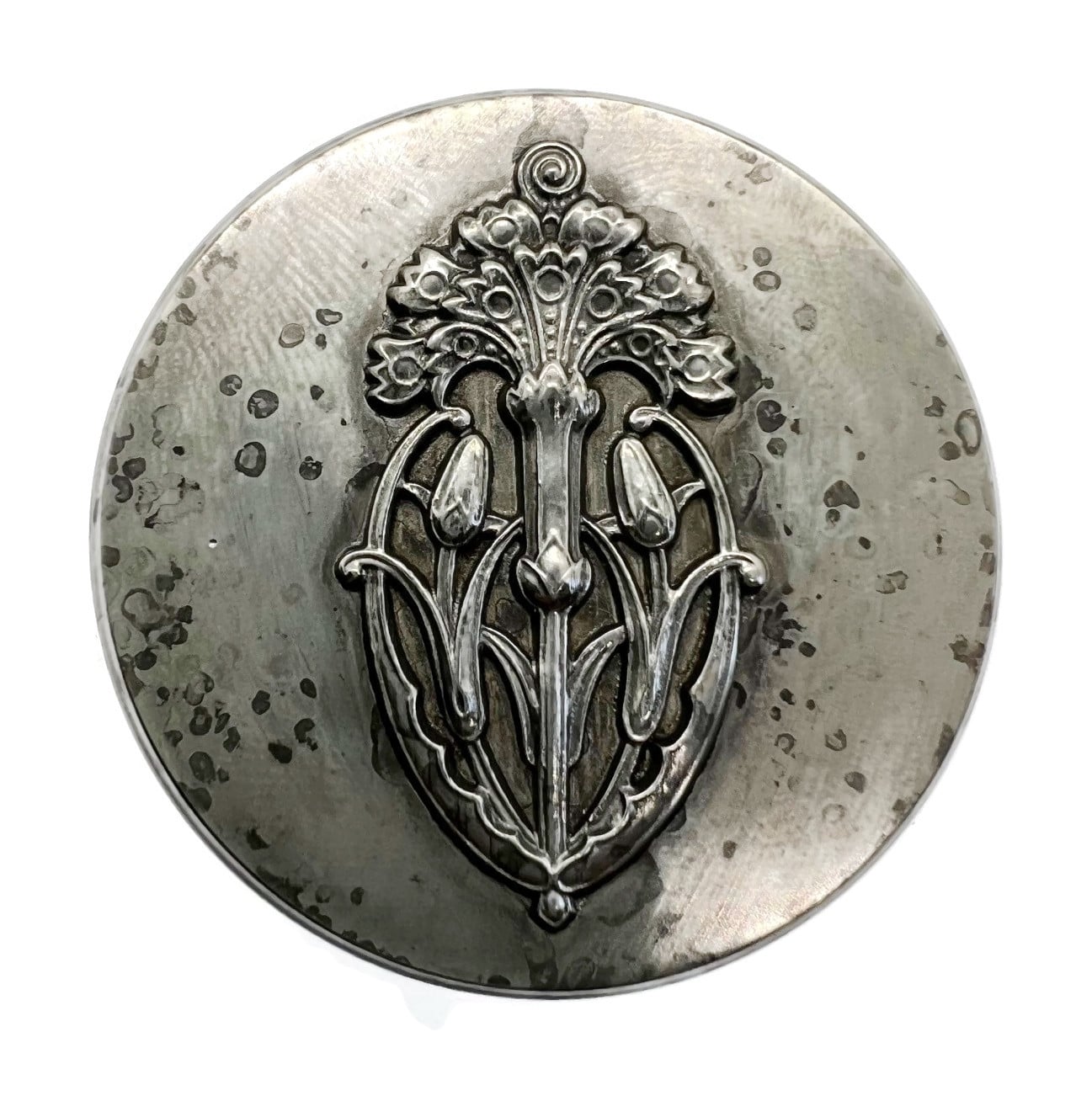 This beautifully realistic, textured moth hub comes from Janvier Gruson in Paris, France. It has endless uses as part of a pin, pendant, hairpin, and more.
