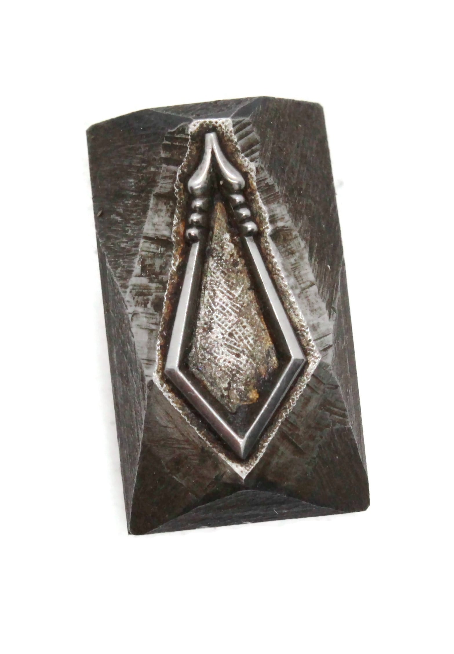 This die must be used in a hydraulic press. Shape measures 1-5/16" x 1". Overall die measures 5-1/2" x 3-3/8".