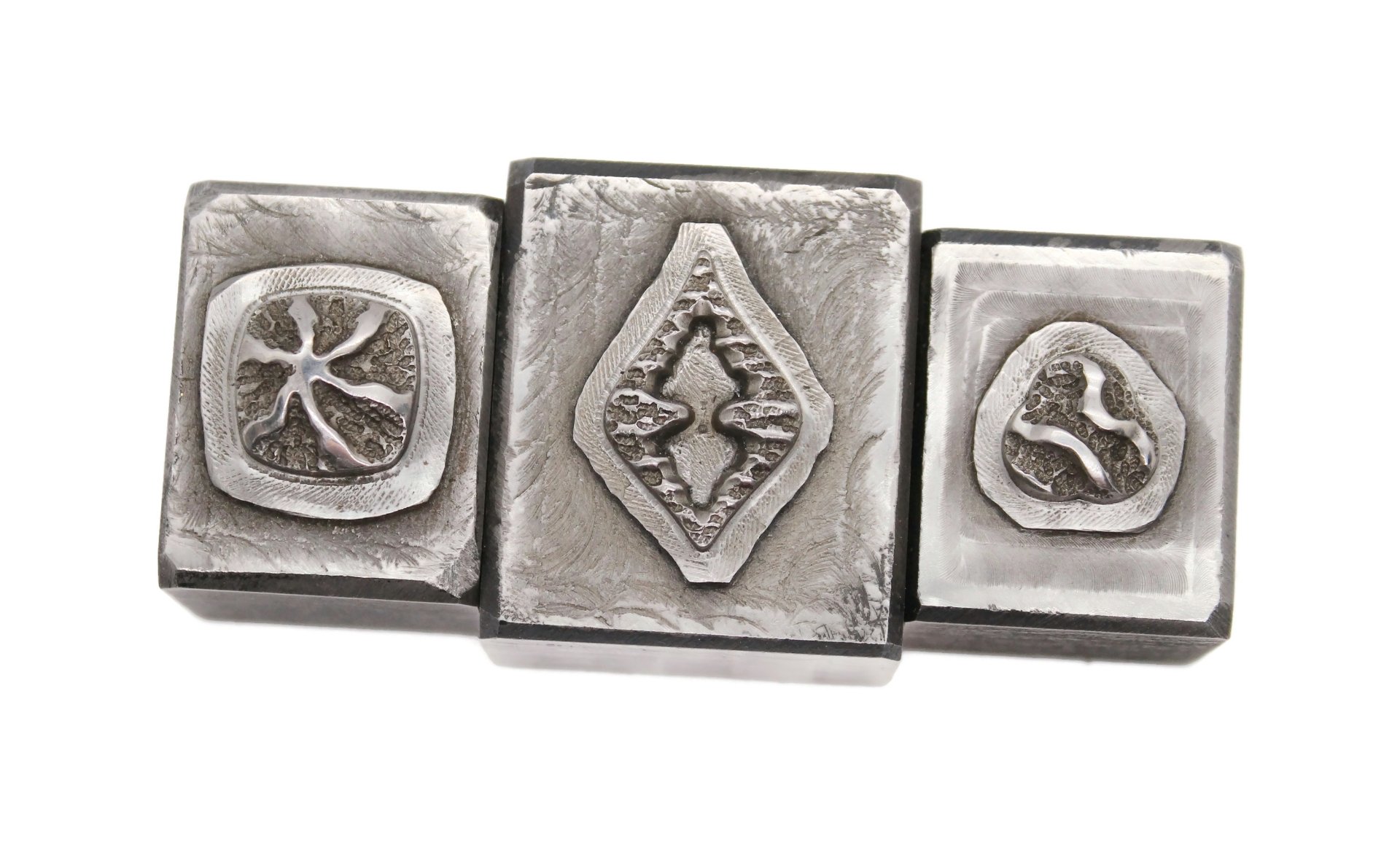 A unique patterned ring that resembles tiles, a drought, or many potholes. Perfect for enamel. From Michael Ilsa (Helsinki, Finland).