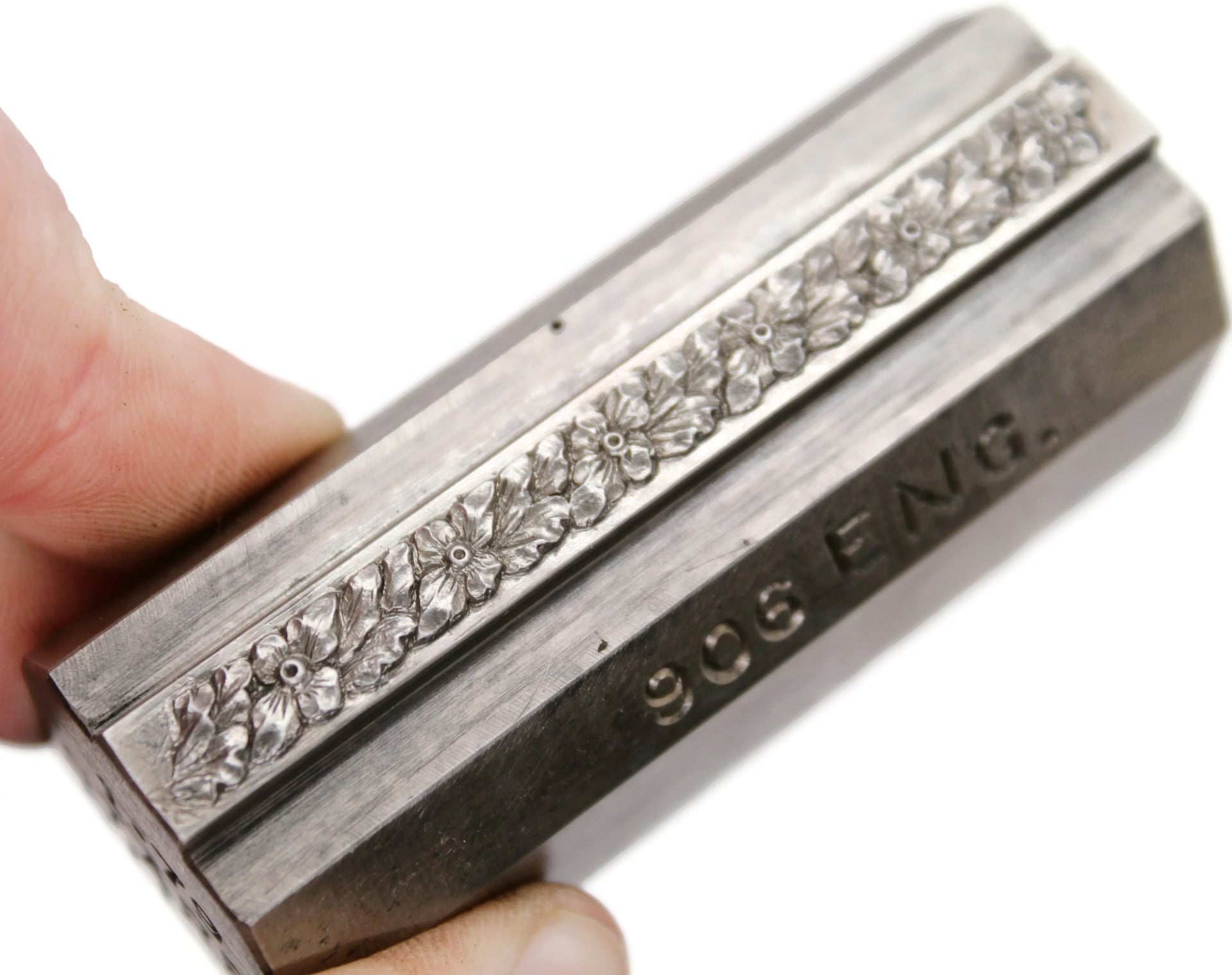 This impression die makes rings, bracelets, and more. From the Parisi Tool & Die. Design: 2-5/8" x 7/8"