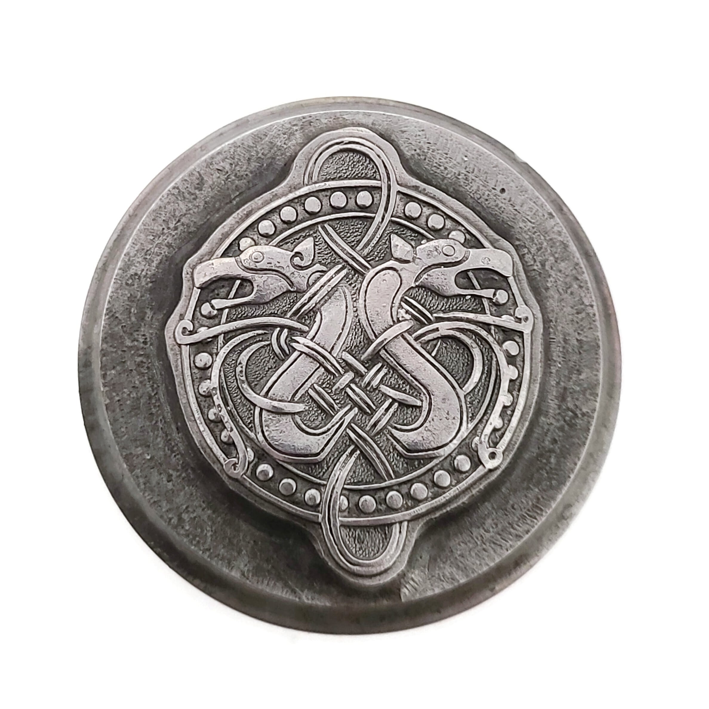 This shallow relief design depicts a family of deer grazing beside a river or pond. Origin unknown. Design: 1-3/16" diameter