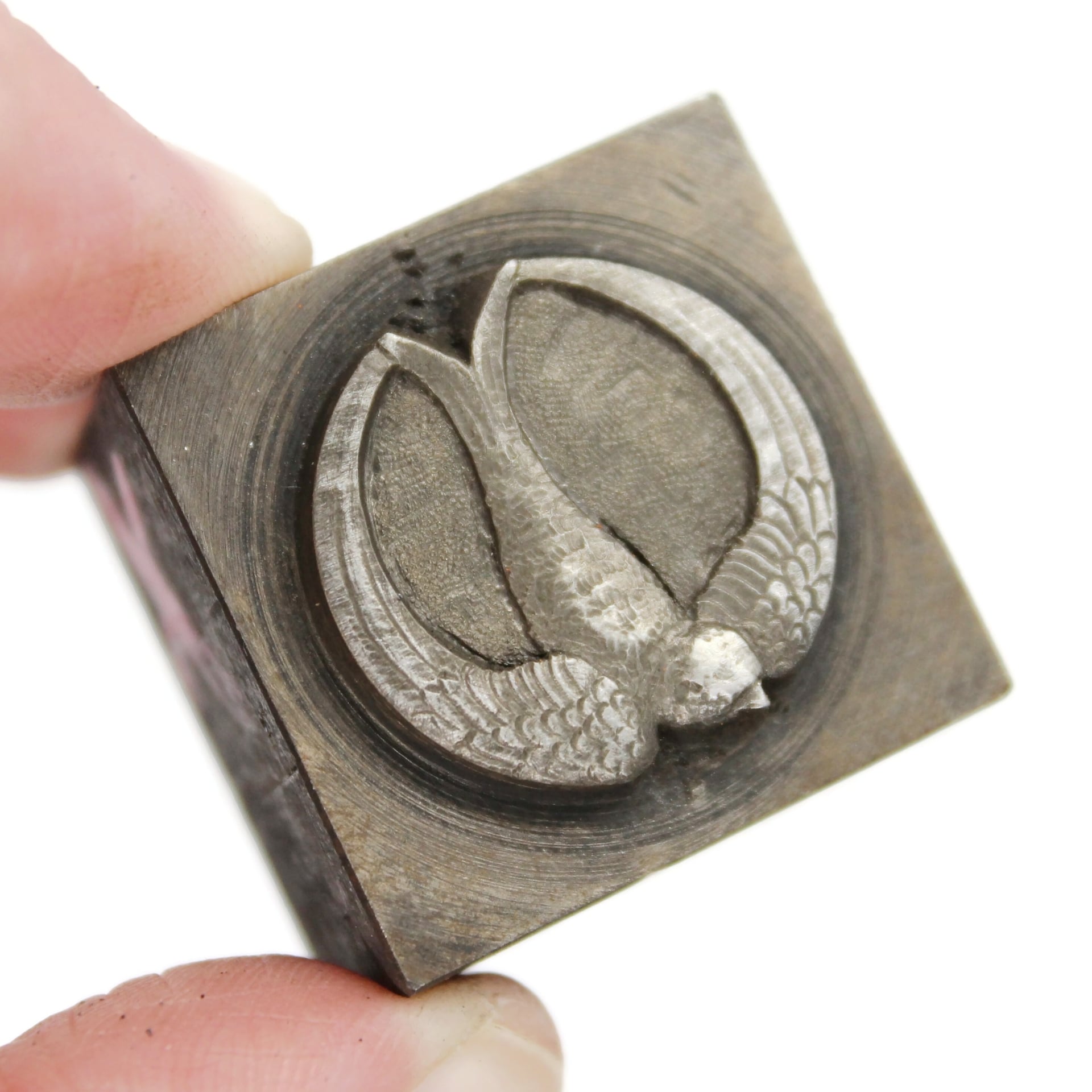 Approx. 16 gauge (Due to supply challenges, gauge may vary.) Design: 3/4" diameter NOTE: Each stamping is made in house, one at a time, using vintage tools and processes. The detail in each stamping may vary, and a stamping with less detail is not considered defective.