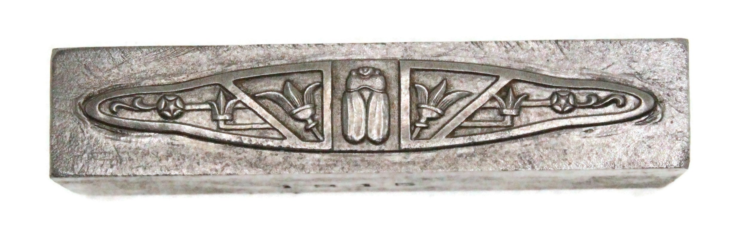 A unique ring or accessory pin covered in Egyptian revival motifs.