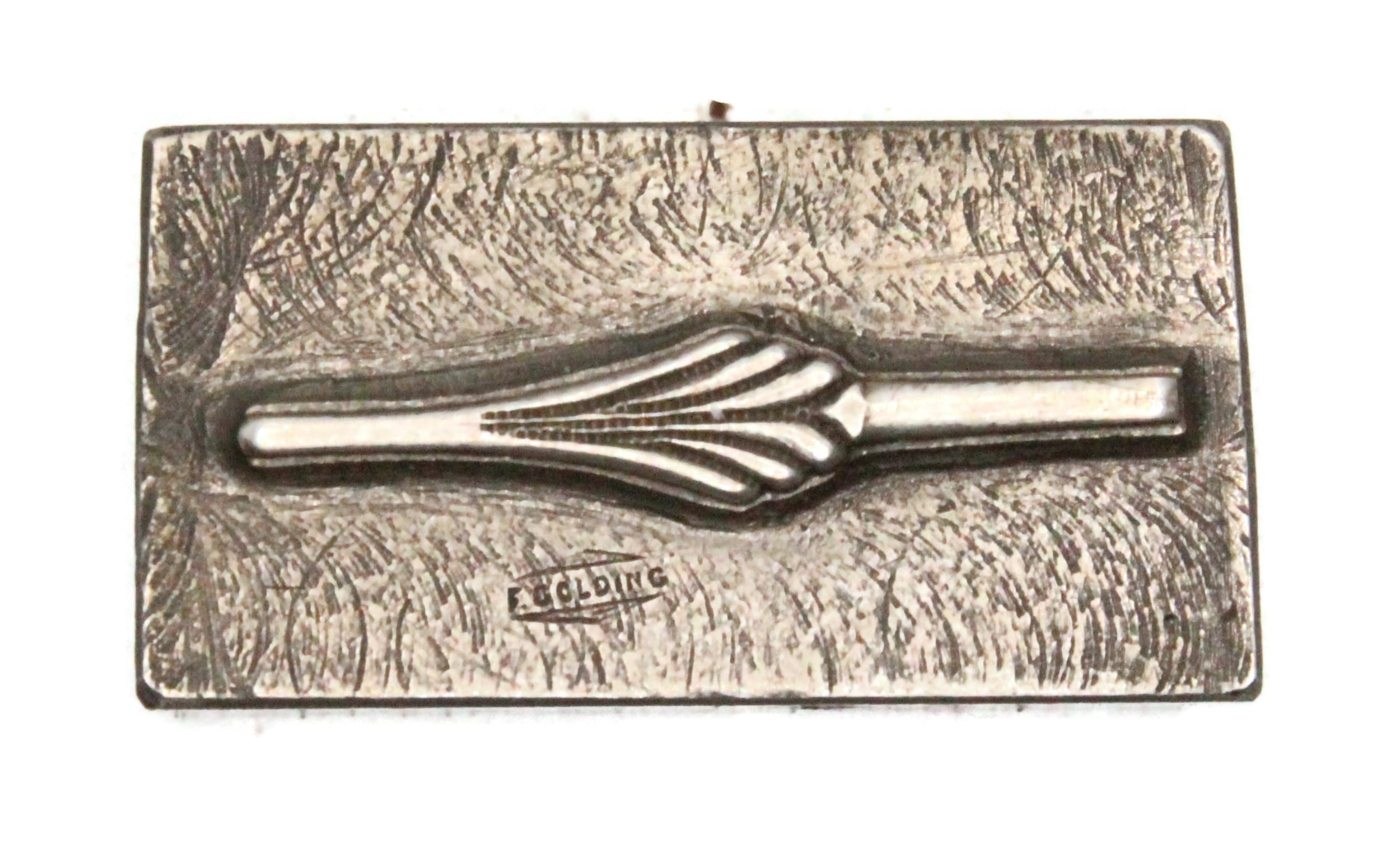 This impression die makes ring tops, hoops, chain links, and bails.
