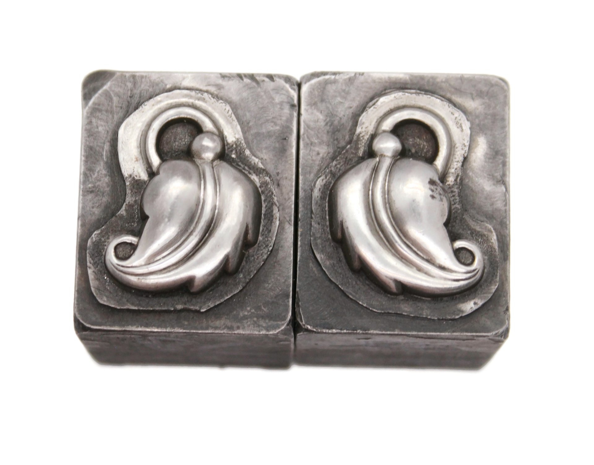 A pair of leaves with loops for links. This pair can make earring charms, bracelet, links, and more. From Beaucraft (est. 1947 Providence, RI).