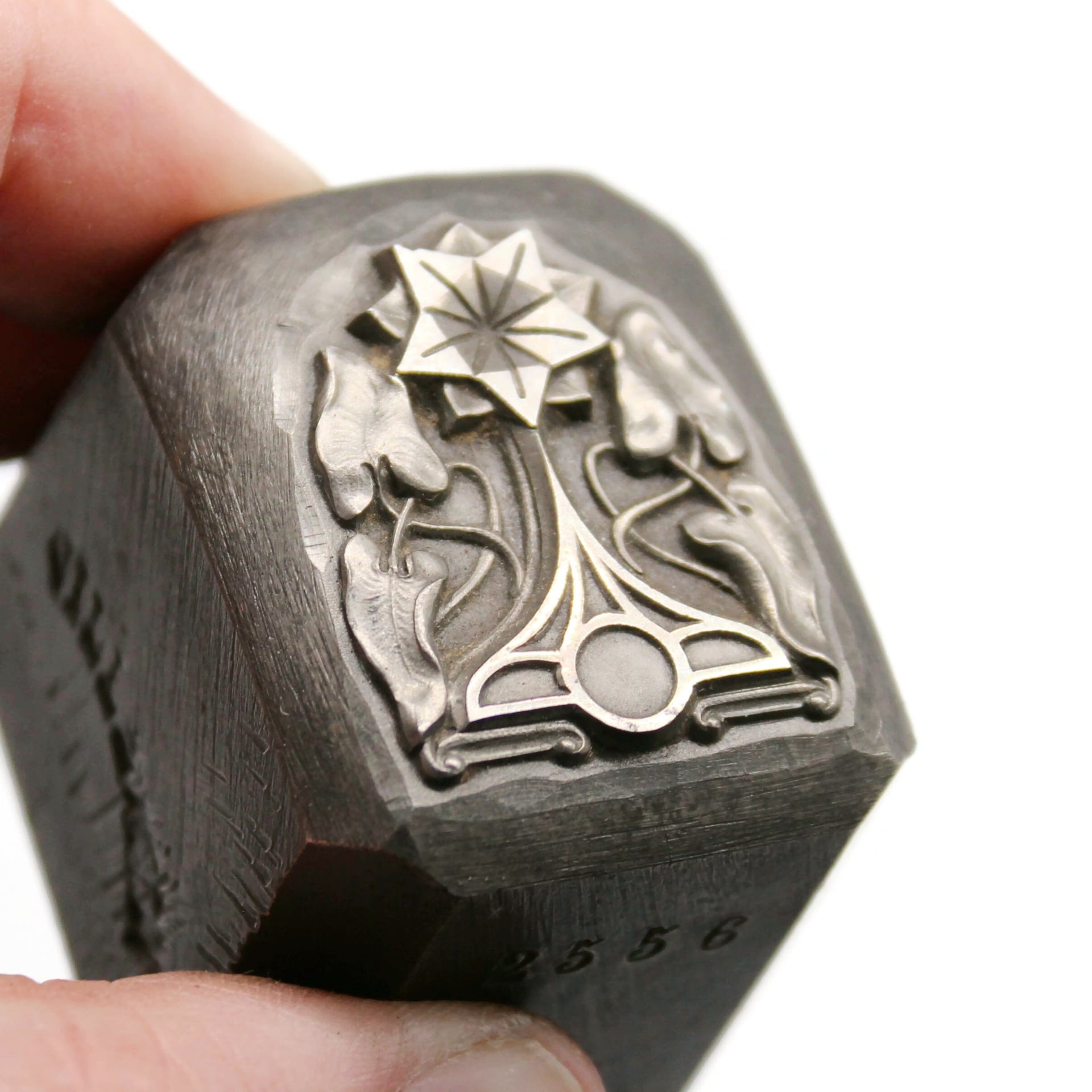 This impression die was made on our antique Janvier machine (c.1894) using the old school method of starting from a galvano. The galvano is from La Forge Bertrand from Paris, France.