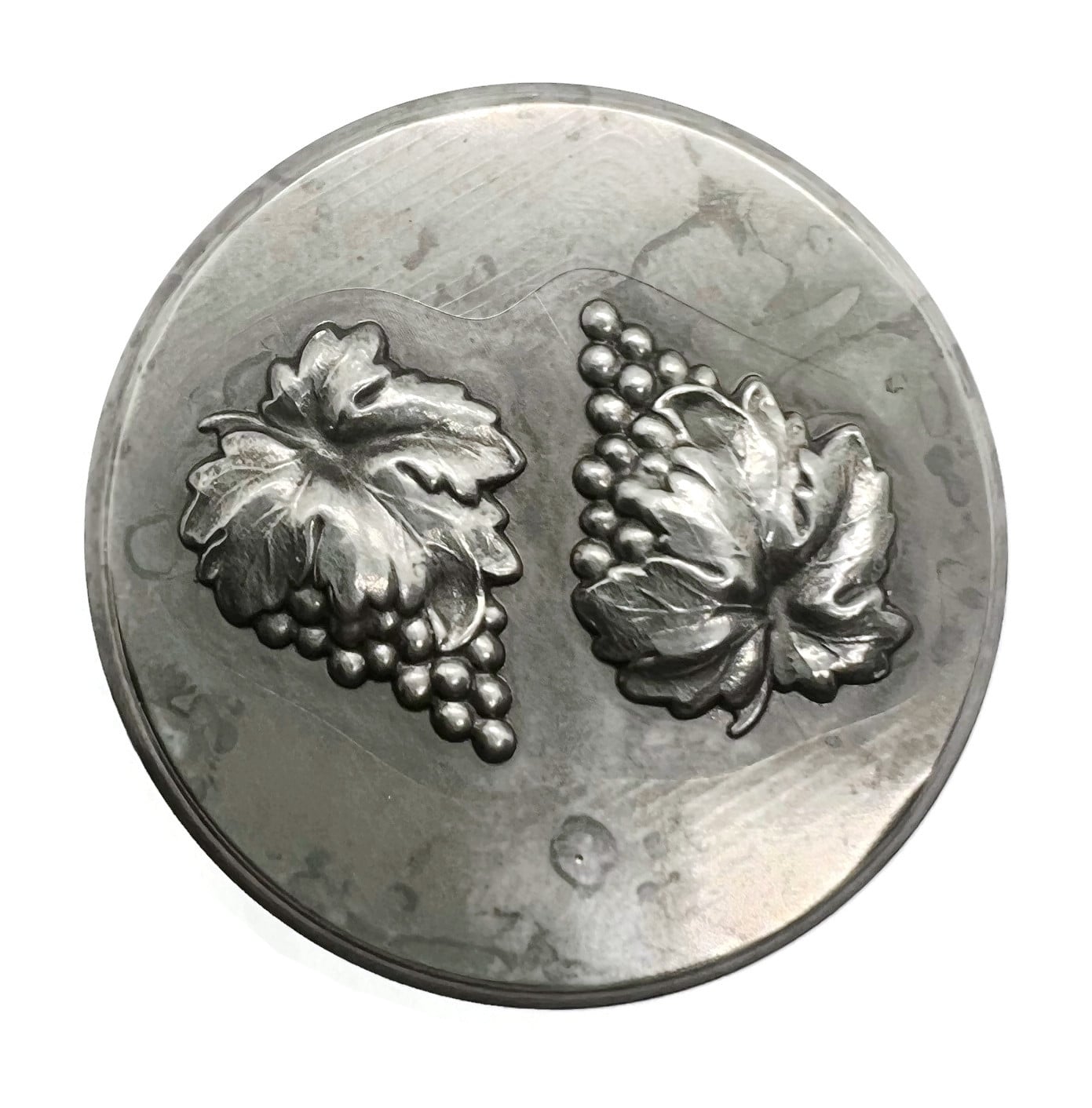 This unique impression die has two bunches of grapes that are reflections of each other. They would be great as earrings!
