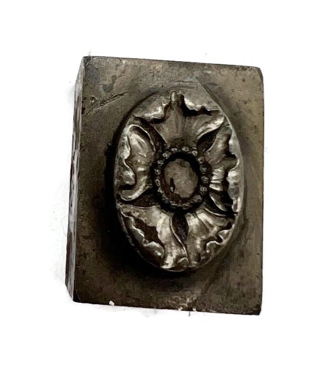 A wonderous ring top delicately engraved with petals that would be great as a ring top, pendant or earring. From Gold Machinery