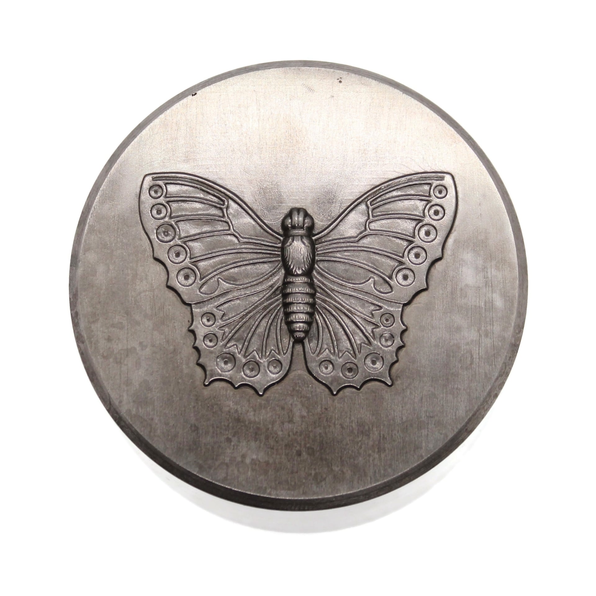Approx. 16 gauge (Due to supply challenges, gauge may vary.) Design: 1-5/8" x 3/4" NOTE: Each stamping is made in house, one at a time, using vintage tools and processes. The detail in each stamping may vary, and a stamping with less detail is not considered defective.
