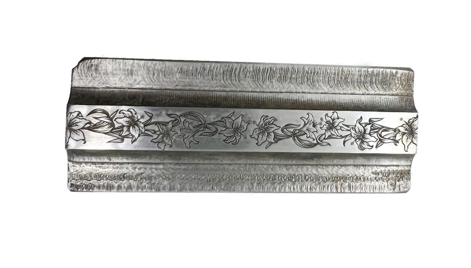 A shallowly engraved arrow with tiny shell-like shapes. Perfect for western and boho jewelry. From Ru-Mart Toolcraft (Providence, RI).