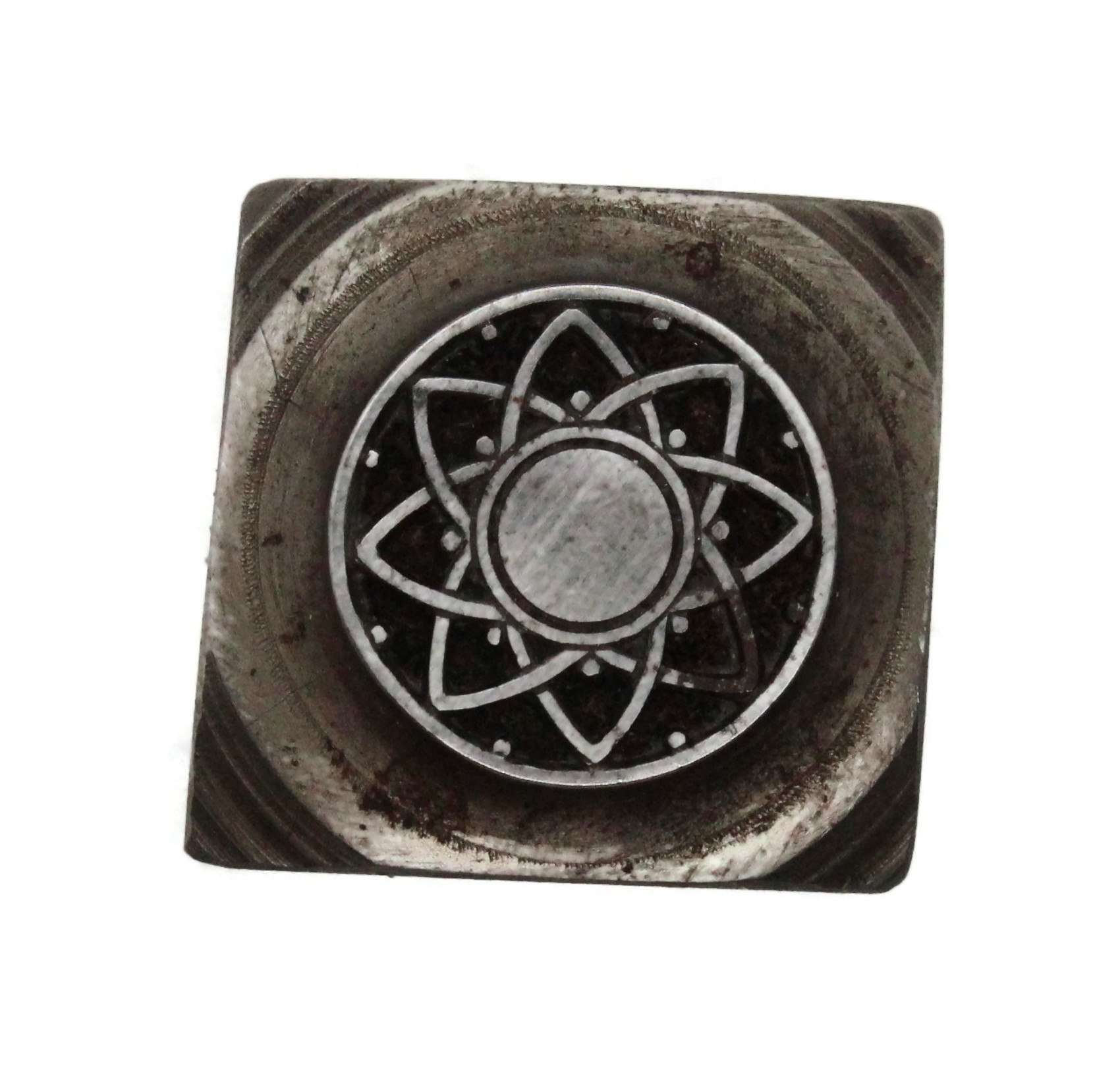 This design can make unique earrings, ring tops, pendants, and more. From Gold Machinery. NOTE: This design is NOT BROKEN in the photo. The metal is simply discolored. Design: 9/16" diameter with a 5mm center
