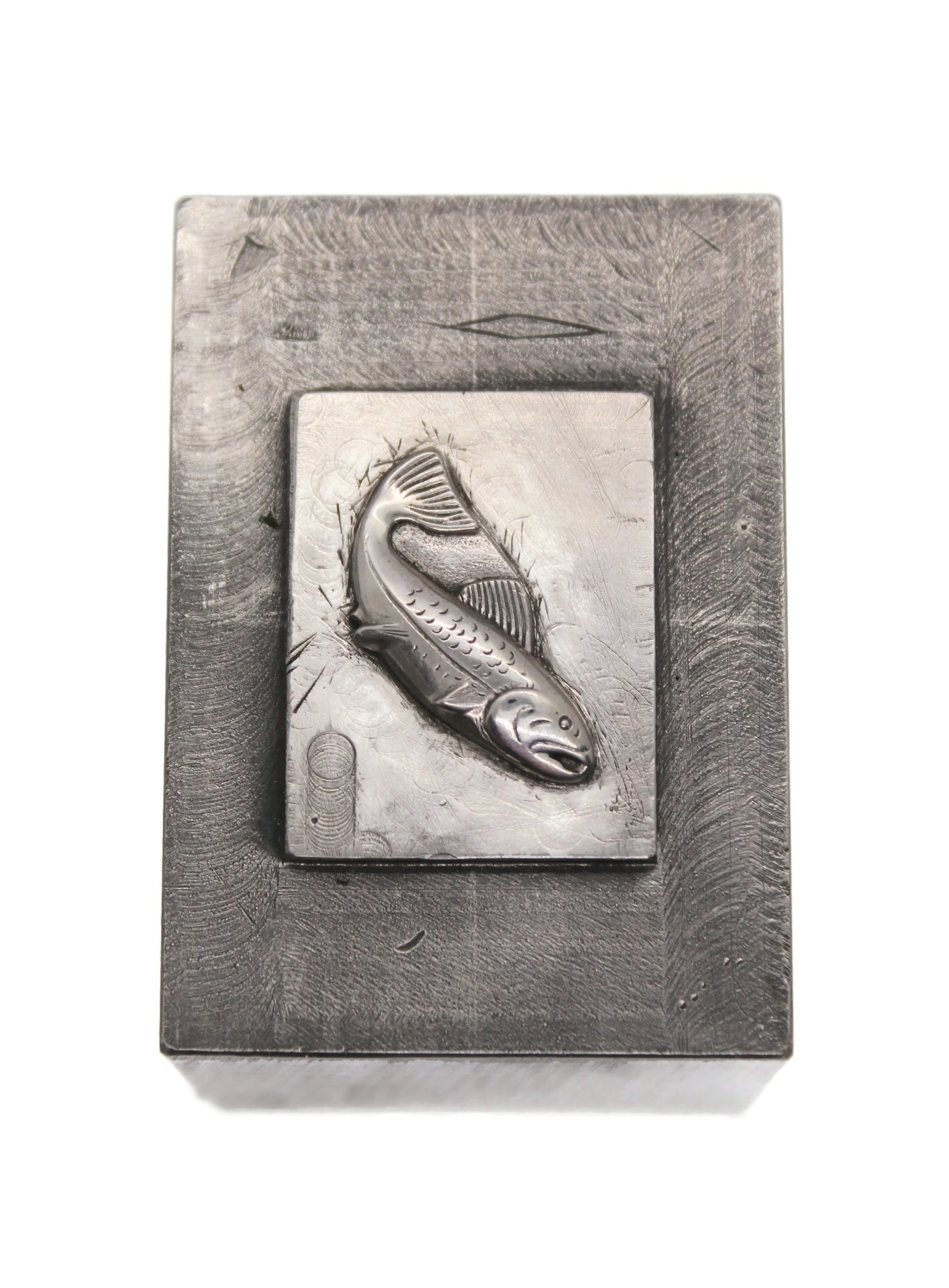 A collectible fish pin from a near complete collection of pins acquired from Gold Machinery. This is a Ten Pounder fish, as apparently marked on the die.