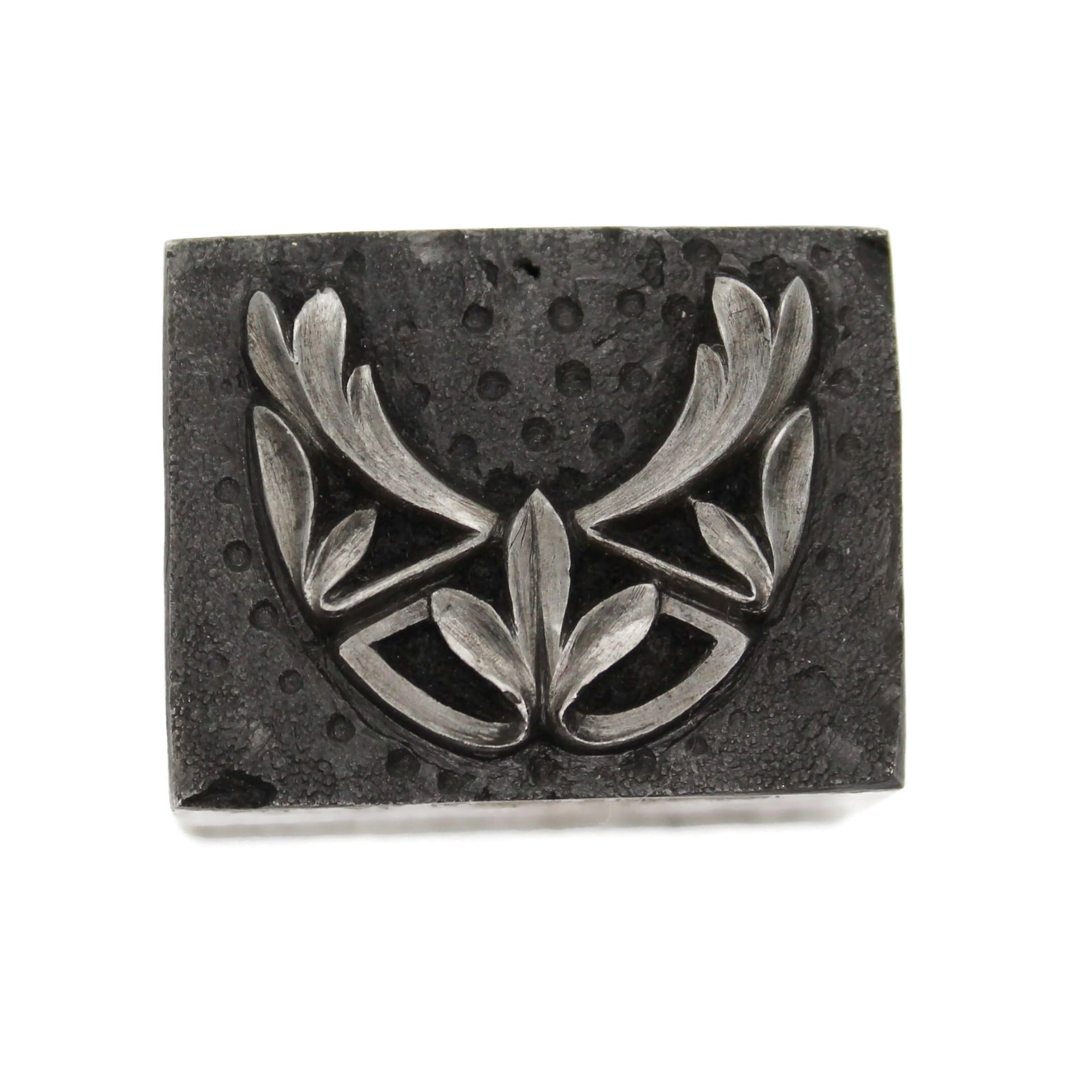 An arch-shaped arrangement of art nouveau leaves. Use this to make bezels, wide ring tops, barrettes, and more! You can even cut this die into components to make earrings, pendants, bails, and more. From Ru-Mart Toolcraft (1950s Providence, RI).