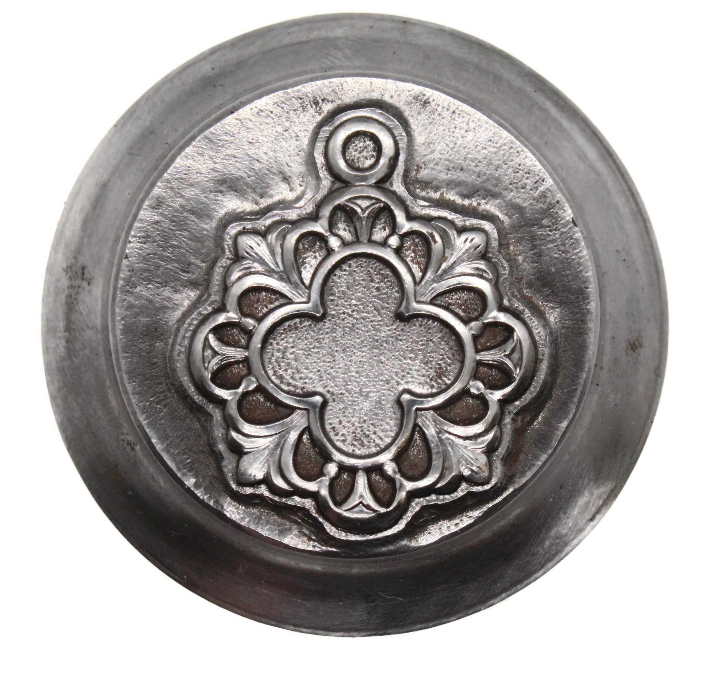 This ornate quatrefoil pendant is beautiful even on its own. An embellished quatrefoil was a staple design in Edwardian jewelry. This impression die comes from Janvier Gruson in 19th-century Paris, France.