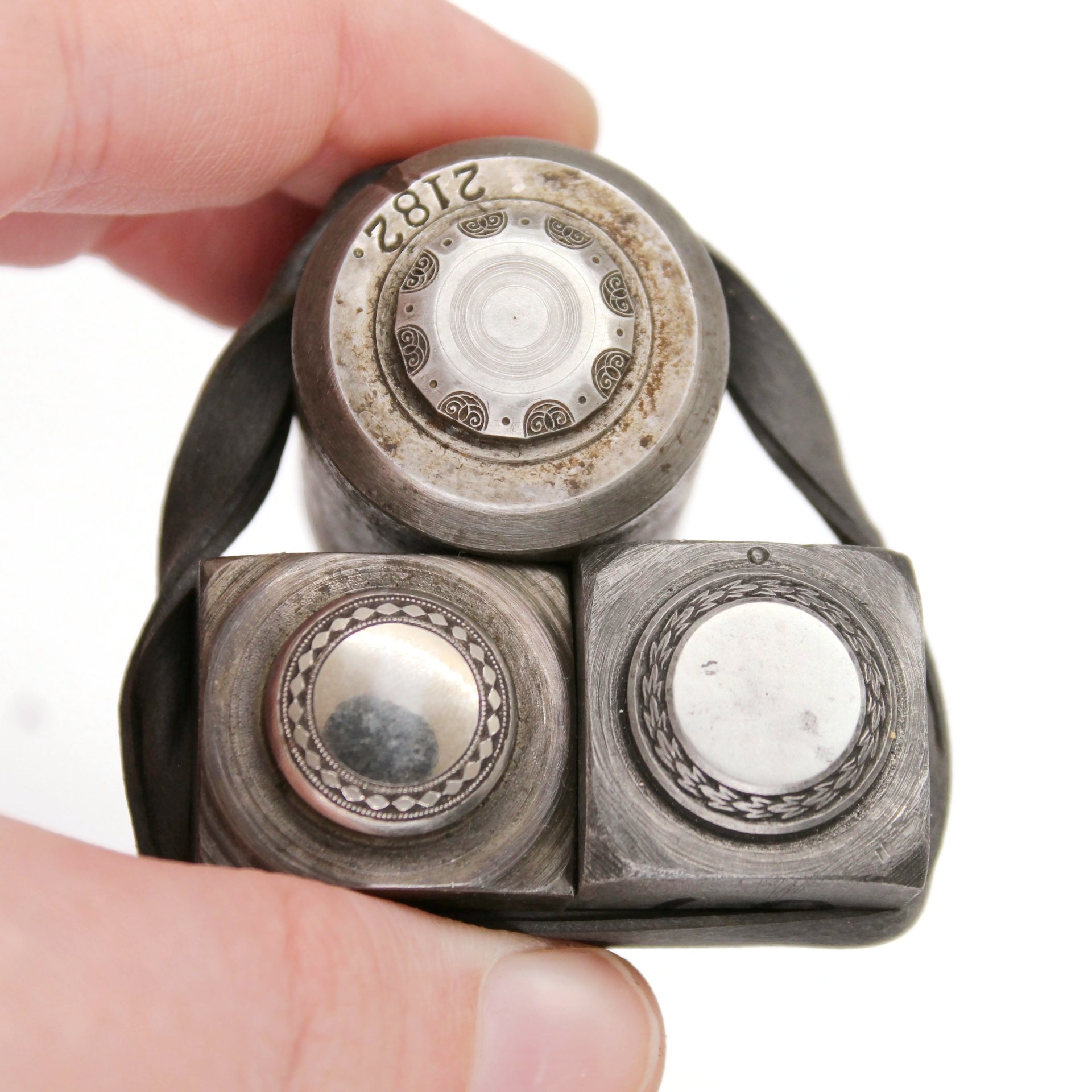 A trio of cuff links or bezels from Larter & Sons (Newark, NJ).