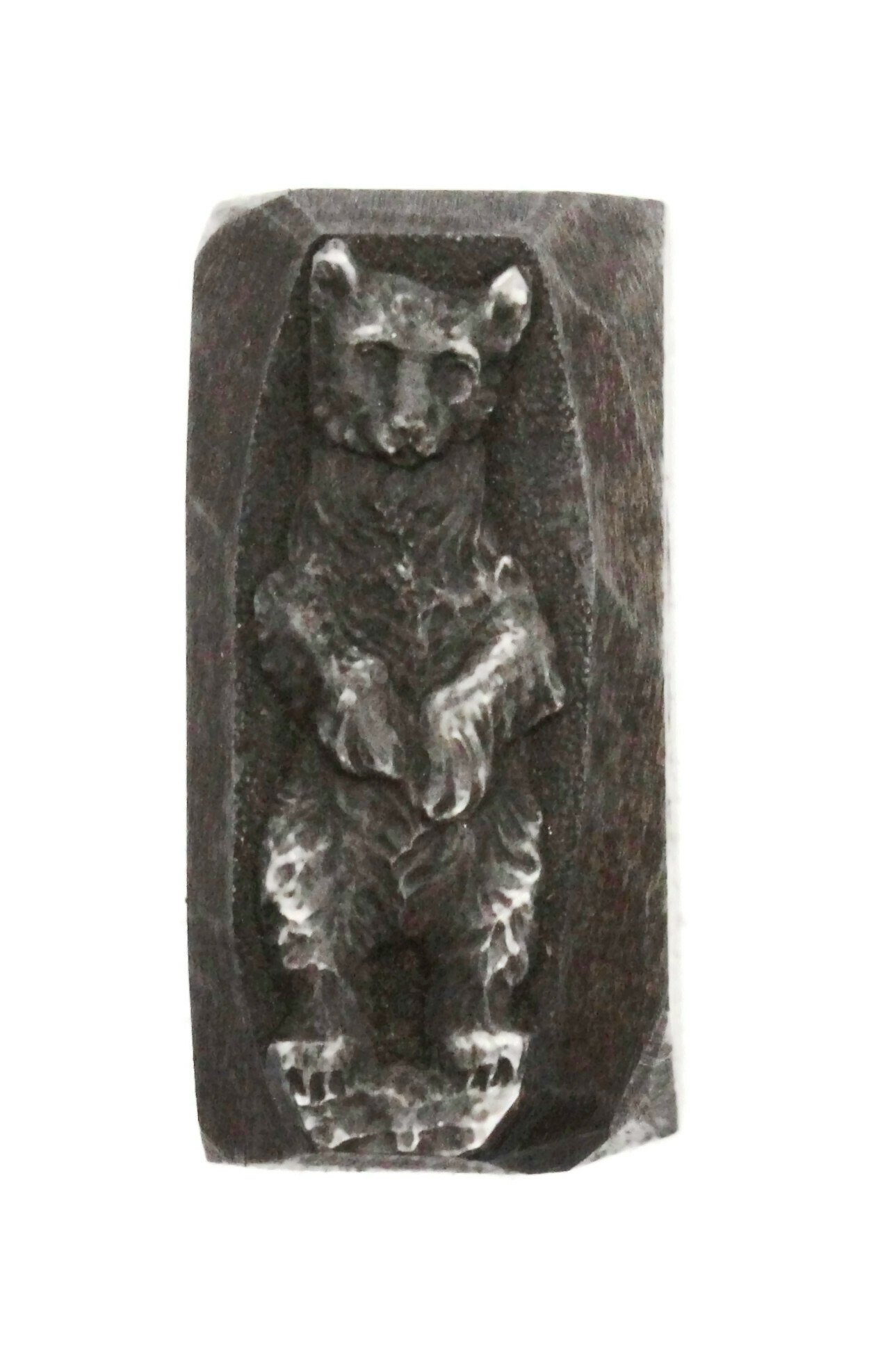 This bear holds himself very politely. Use this design as a pin or pendant.
