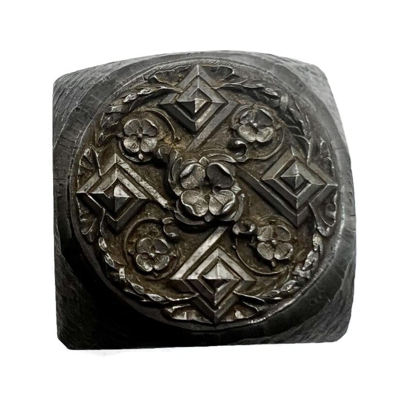 An intricate design with branched pyramids and flowing flowers entwined together. From Villemin, Paris, France 19th Century.