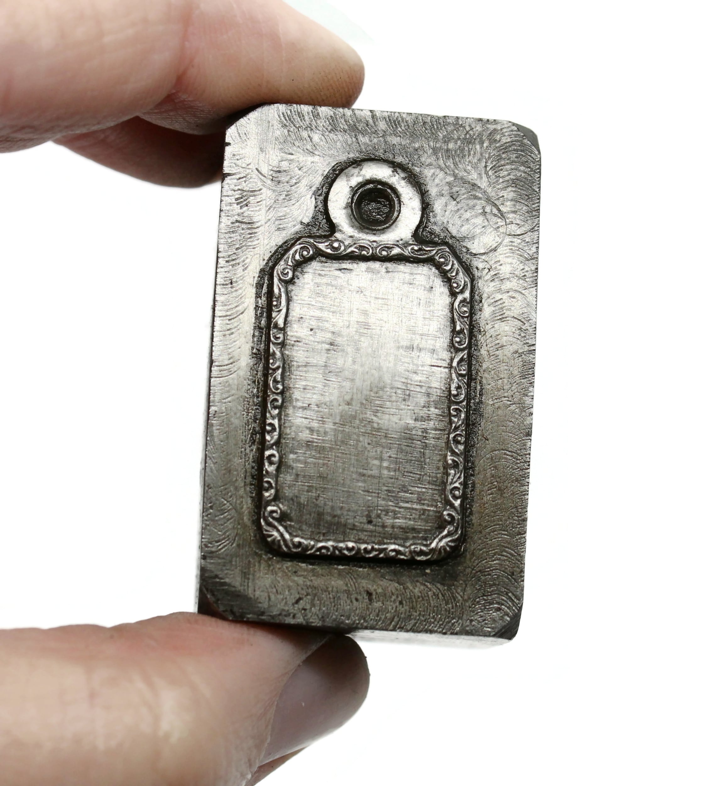 Approx. 16 gauge (Due to supply challenges, gauge may vary.) Design: 1-1/4 diameter NOTE: Each stamping is made in house, one at a time, using vintage tools and processes. The detail in each stamping may vary, and a stamping with less detail is not considered defective.