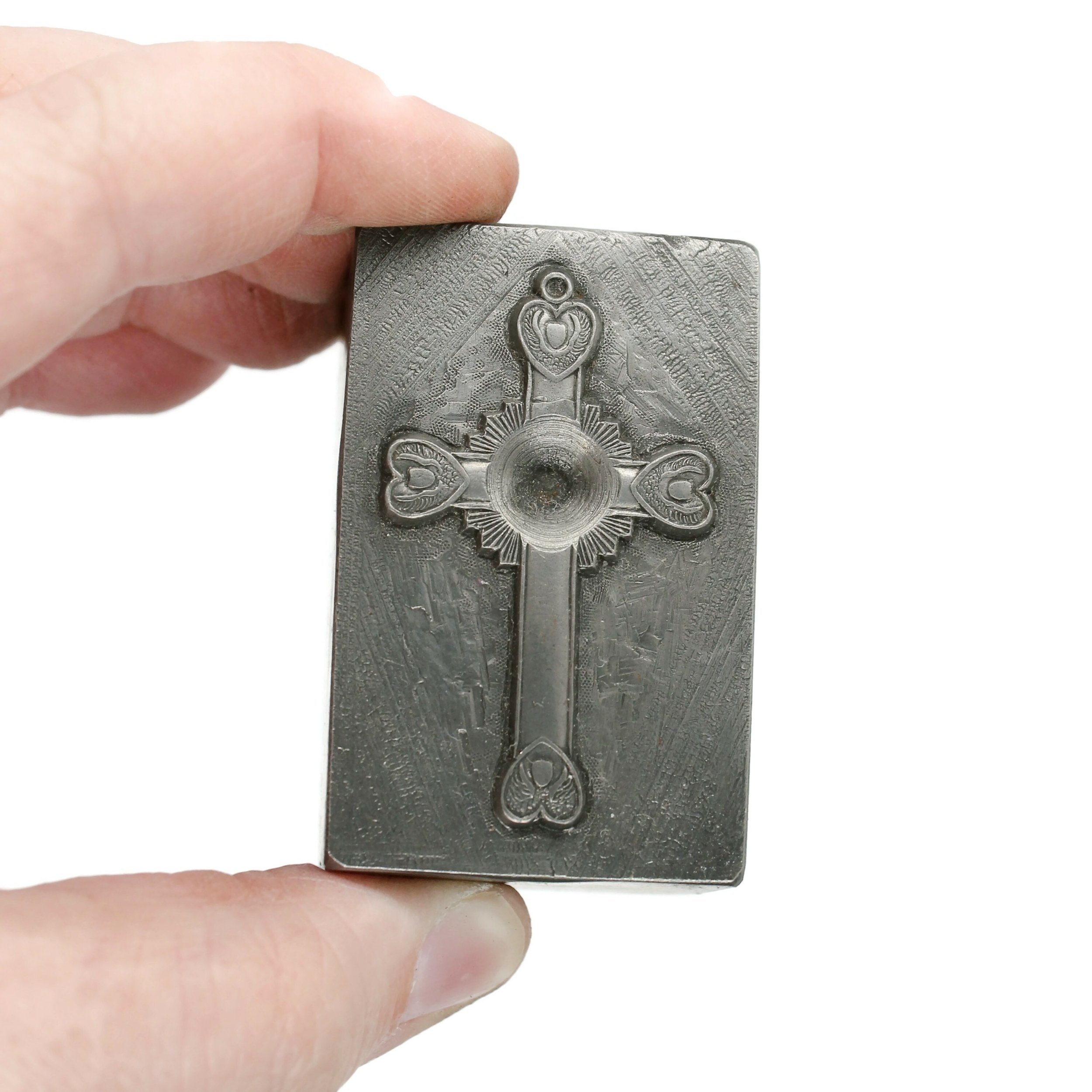 This cross pendant has a large center stone and hearts on the ends. From the Parisi Tool & Die Co.