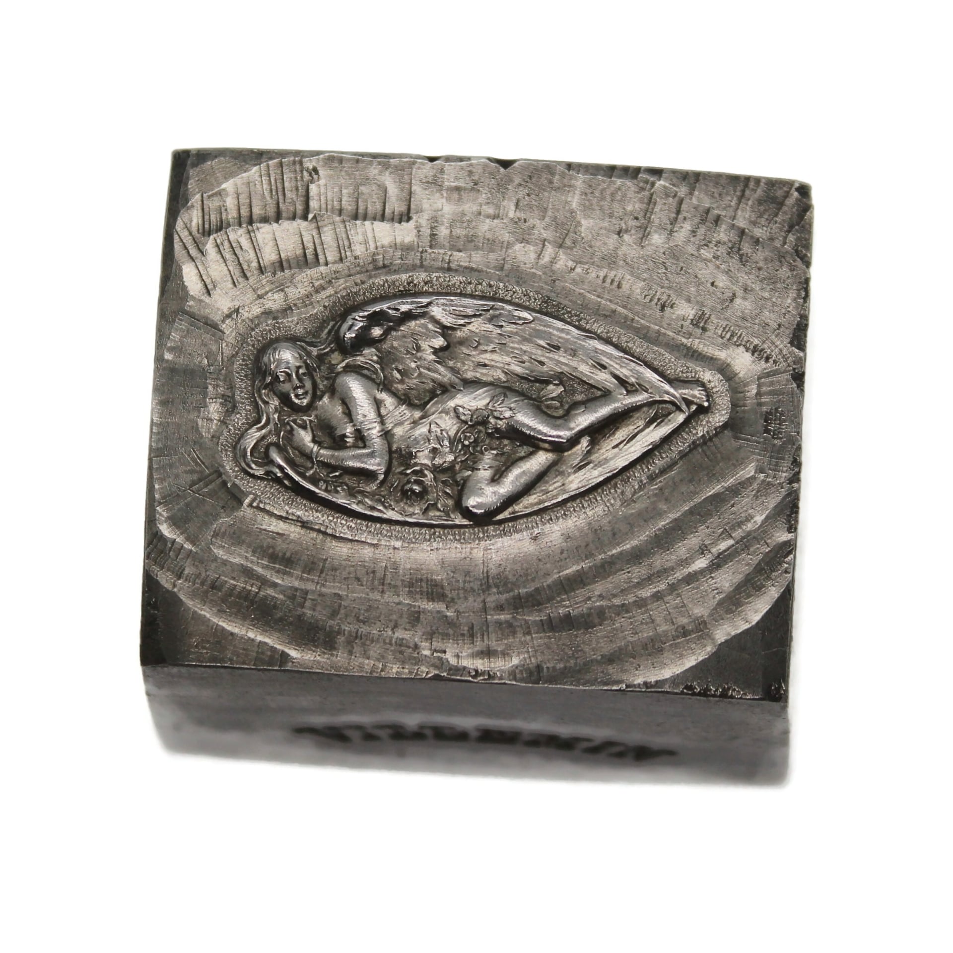 This heart depicts a landscape with Jesus on the cross at the center. From the Parisi Tool & Die Co. in Providence, Rhode Island. Last offered in 2024!