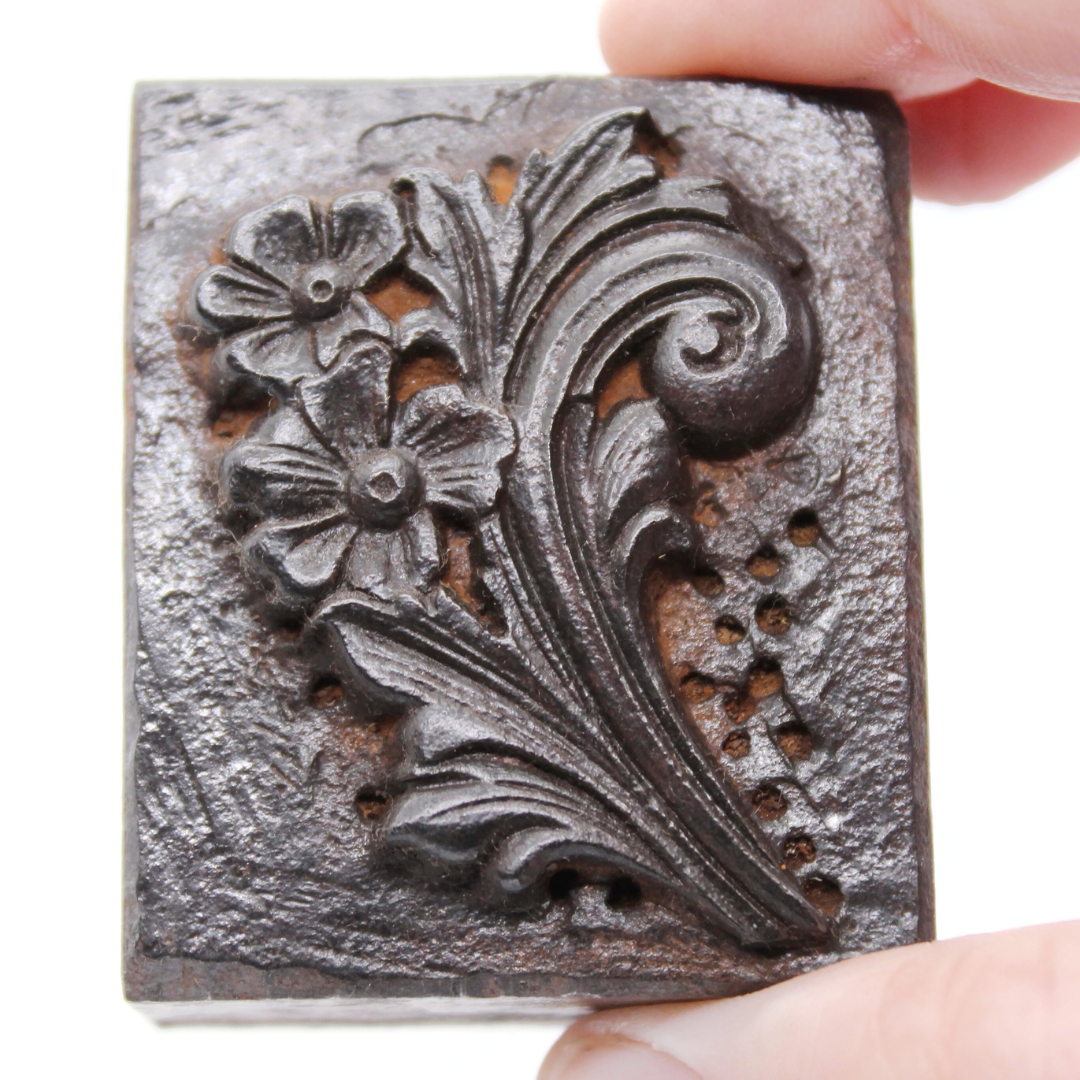 A curled pair of leafy wildflowers. Has a left-facing version sold separately. From W & S Blackinton (est. 1865 Meriden, CT).