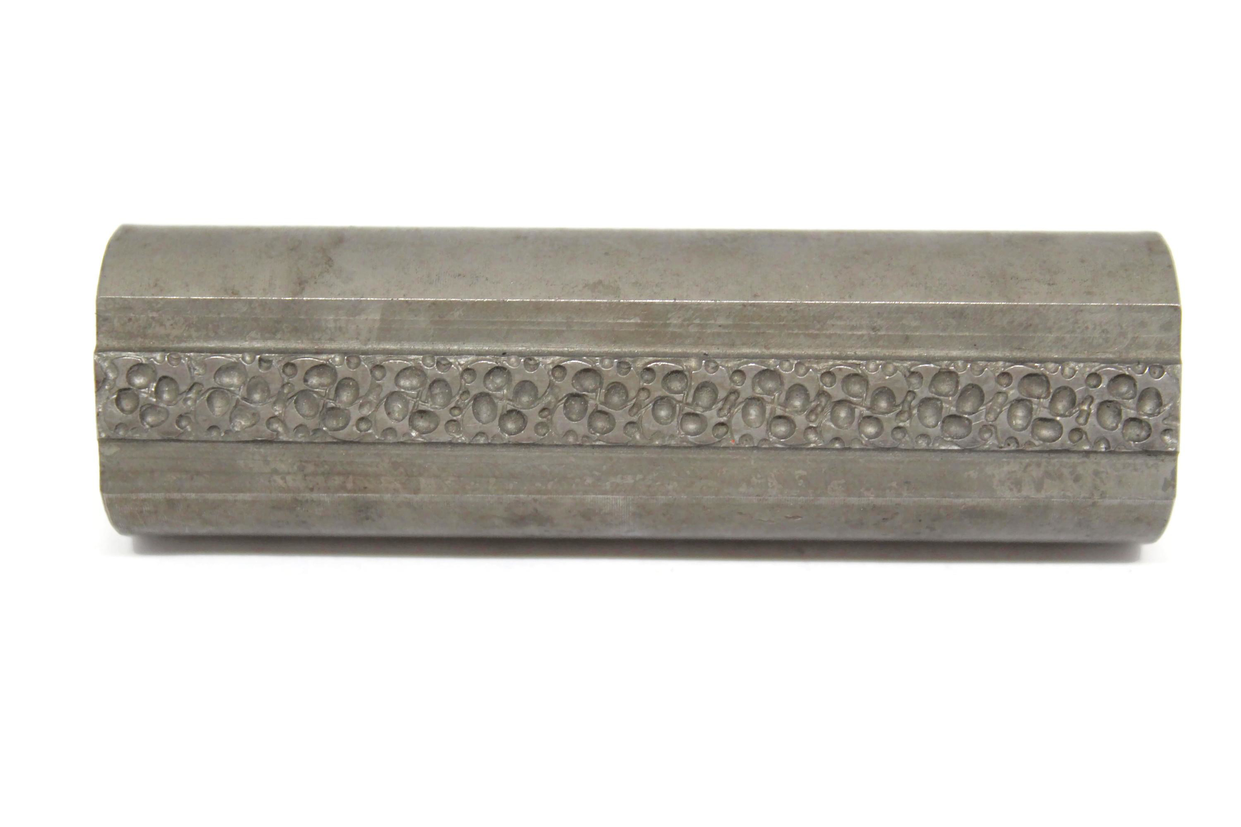 This plate is designed to be used in a rolling mill with annealed, non-ferrous metal. Plate Size: ~7" L x 2" W Plate Thickness: ~2.5mm Design Size: 1-1/2" Diameter (each mandala) Customer demo: Paula Mion