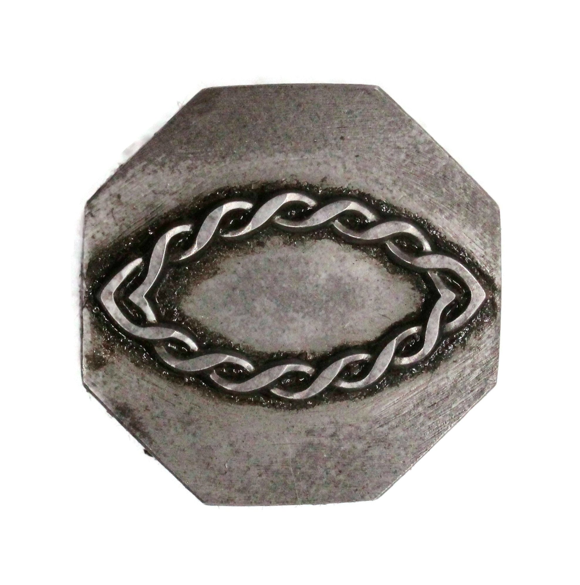 This die must be used in a hydraulic press. The shape measures 1-7/8" x 5/8". Overall die measurements are 5" x 3-7/8".