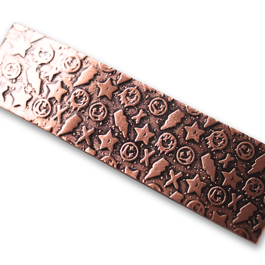 This pattern is comprised of punk/rock/alternative motifs like spray paint smiley faces, lightning bolts, x's, and stars. Perfect for backplates and bracelets. The small version of RMP545 Rebel Paint, sold separately.