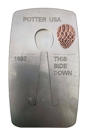 This die must be used in a hydraulic press. Shape measures 1-1/4" x 7/8". Overall die measures 5-3/4" x 3-3/8". This die pairs well with PD 1636 and 1637.
