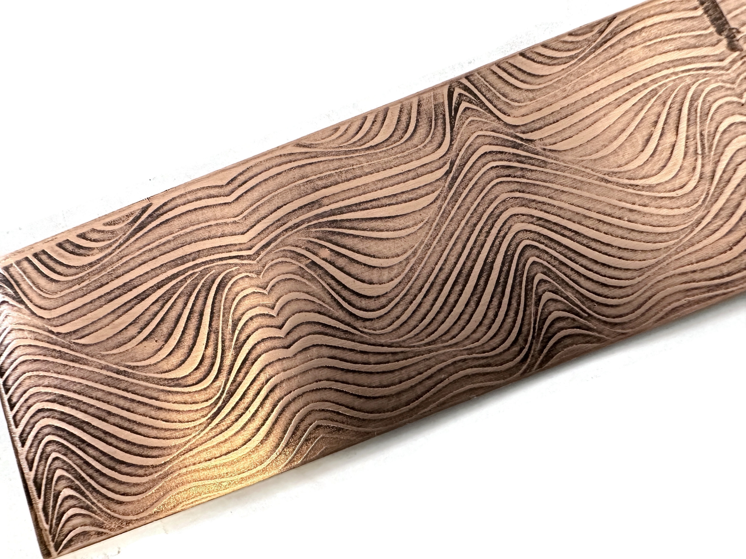This pattern plate captures the fascinating texture of a moire pattern. It's perfect for designs that call for a random-yet-precise texture. Design: 7" long x 2" wide x ~1/18" thick