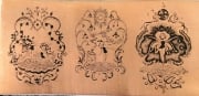 Overall Design Size: approximately 2" x 6-7/8". Central Ouija board 1-1/4" x 7/8". Larger "Goodbye" Planchette 1-1/4" x 1". Smaller "Goodbye" planchette 7/8" x 3/4". Larger moon planchette 1-1/4" x 15/16". Smaller moon planchette 15/16" x 11/16". Designed for use in a rolling mill.