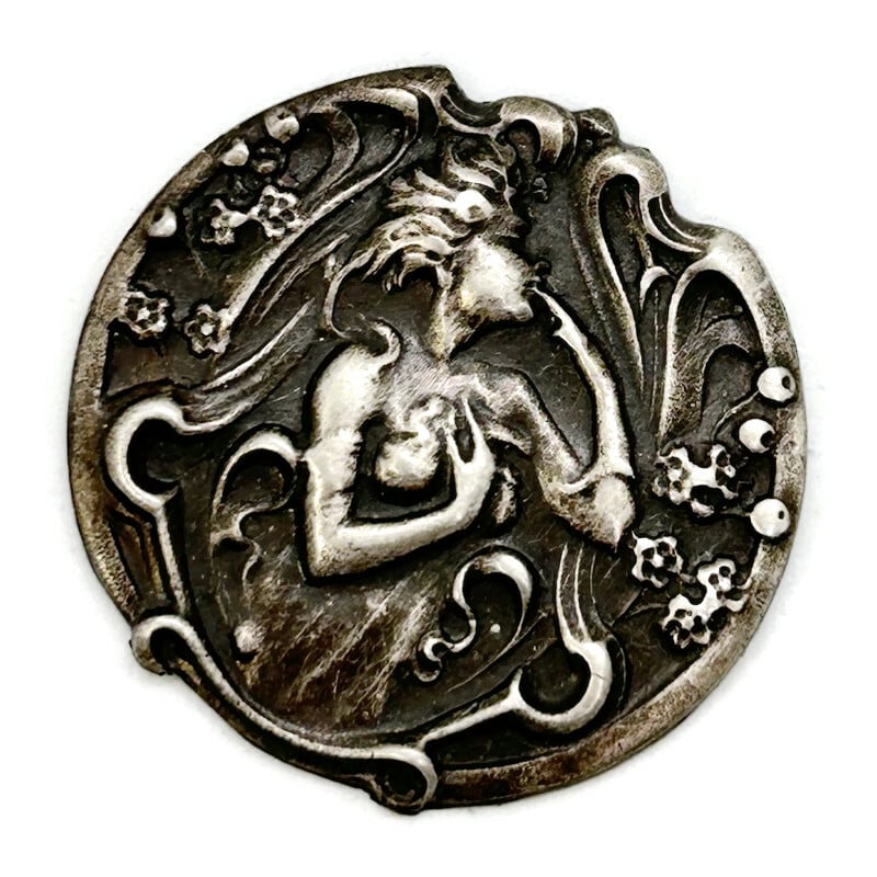 Approx. 16 gauge (Due to supply challenges, gauge may vary.) Design: 1-1/4" diameter NOTE: Each stamping is made in house, one at a time, using vintage tools and processes. The detail in each stamping may vary, and a stamping with less detail is not considered defective