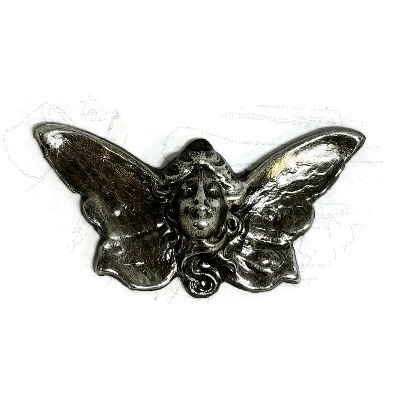 Approx. 16 gauge (Due to supply challenges, gauge may vary.) Design: 1-1/2" x 1-1/8" NOTE: Each stamping is made in house, one at a time, using vintage tools and processes. The detail in each stamping may vary, and a stamping with less detail is not considered defective.