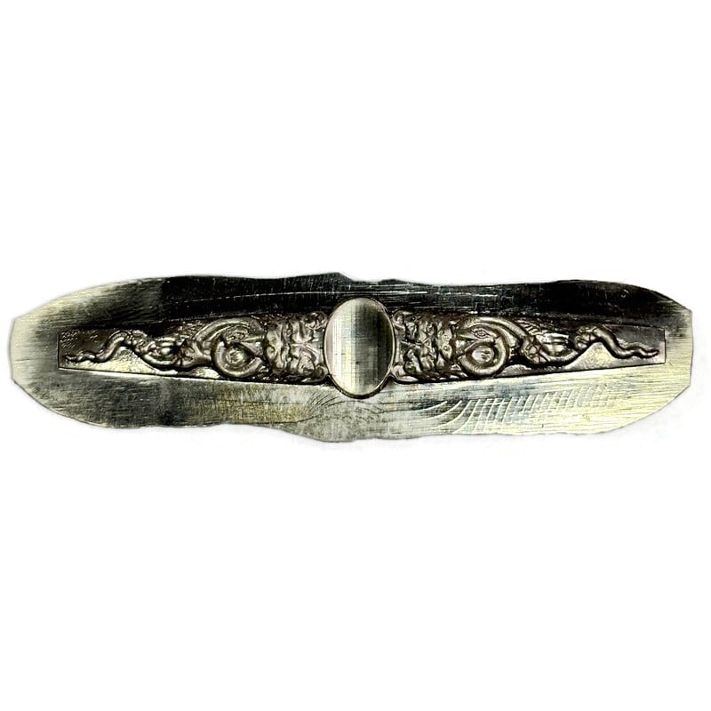 Approx. 12 gauge, stamped solid. Design: 2-3/4" x 1/2" Stone Setting: 12mm x 8mm