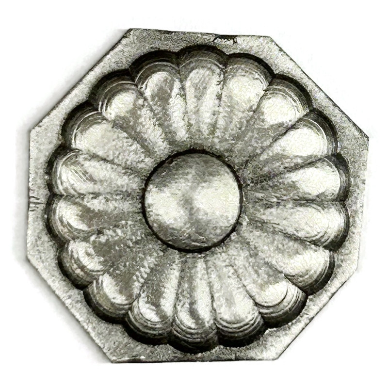 Approx. 16 gauge (Due to supply challenges, gauge may vary.) Design: 7/8” diameter NOTE: Each stamping is made in house, one at a time, using vintage tools and processes. The detail in each stamping may vary, and a stamping with less detail is not considered defective.